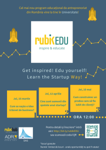 Universitatea „Vasile Alecsandri” din Bacău reprezentată de Societatea Antreprenorială Studențească organizează în colaborare cu Centrul RubikHub și Agenția de Dezvoltare Regională Nord-Est Piatra Neamț cel mai nou program educațional de antreprenoriat din România.