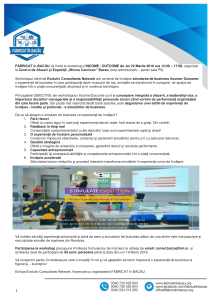 Workshopul oferit de EVOLUTIV CONSULTANTS NETWORK are ca temă SIMULAREA DE BUSINESS INCOME/ OUTCOME, o experiență de business în care participanții devin executivi de top, echipele se transformă în companii, iar spaţiul de învăţare într-o piaţă concurenţială, dinamică şi în continuă schimbare.