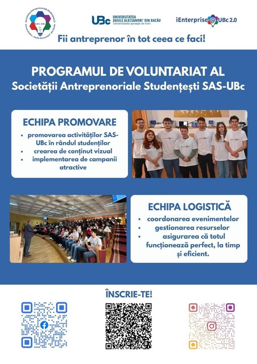 Alătură-te Programului de Voluntariat al Societății Antreprenoriale Studențești SAS-UBc și fii antreprenor în tot ceea ce faci!