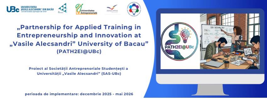 - Vă invităm la conferința de închidere a proiectului „Mentalitate antreprenorială, inovare sustenabilă, incluziune și interdisciplinaritate: premise pentru consolidarea ecosistemului antreprenorial competitiv la Universitatea „Vasile Alecsandri” din Bacău”