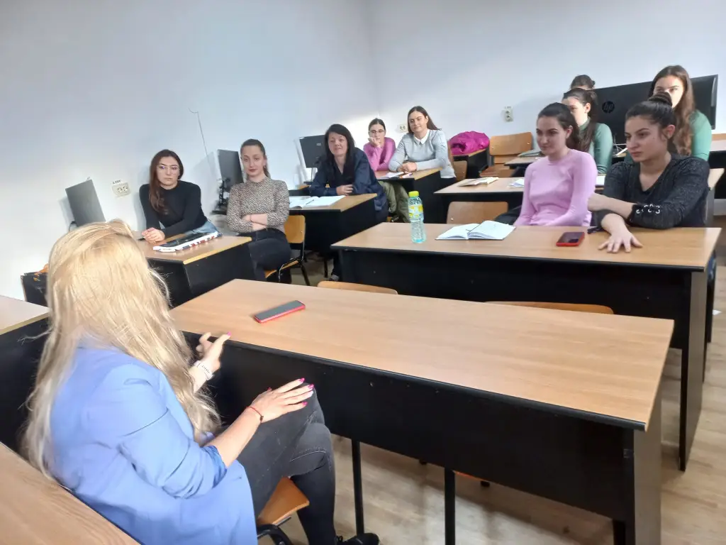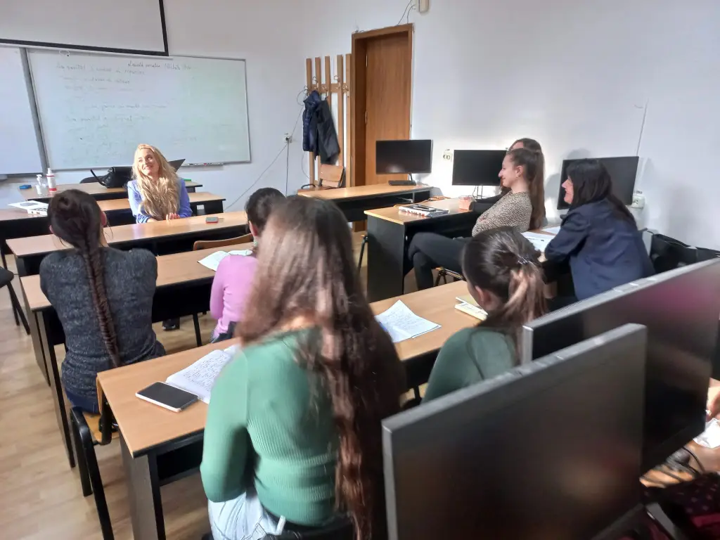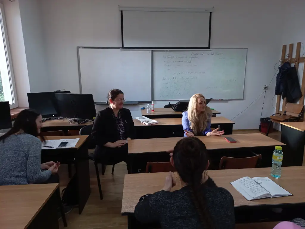 La întâlnire au participat, prof. Denisa Zaldea, absolvent de succes al Universității, conf. univ. dr. Petronela Savin, responsabilul din partea Facultății de Litere pentru Societatea Antreprenorială Studențească a UVAB, alături de studenții Facultății de Litere, de la specializările română-engleză și franceză-română, anul al II-lea și al III-lea.
