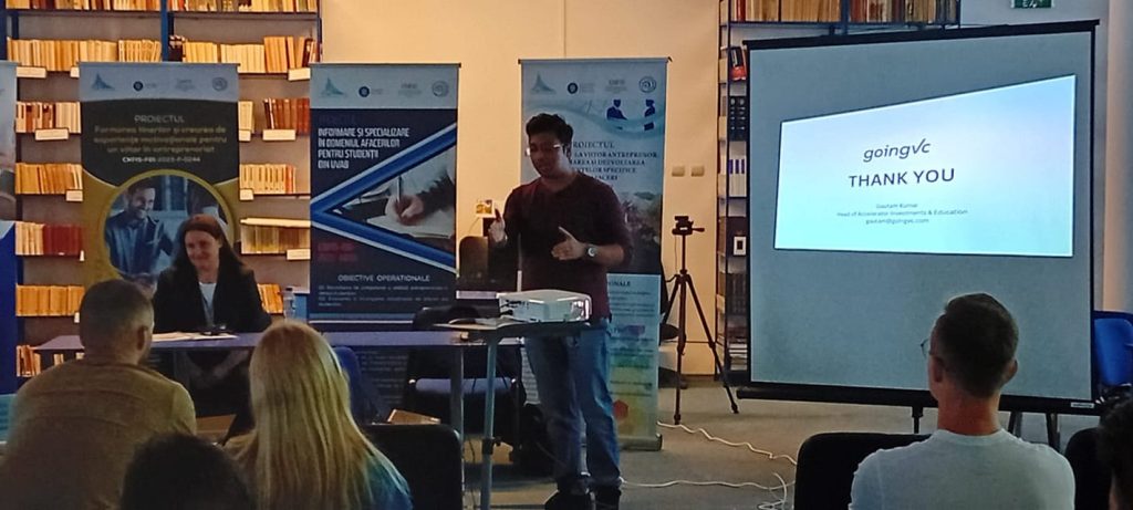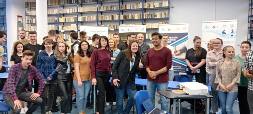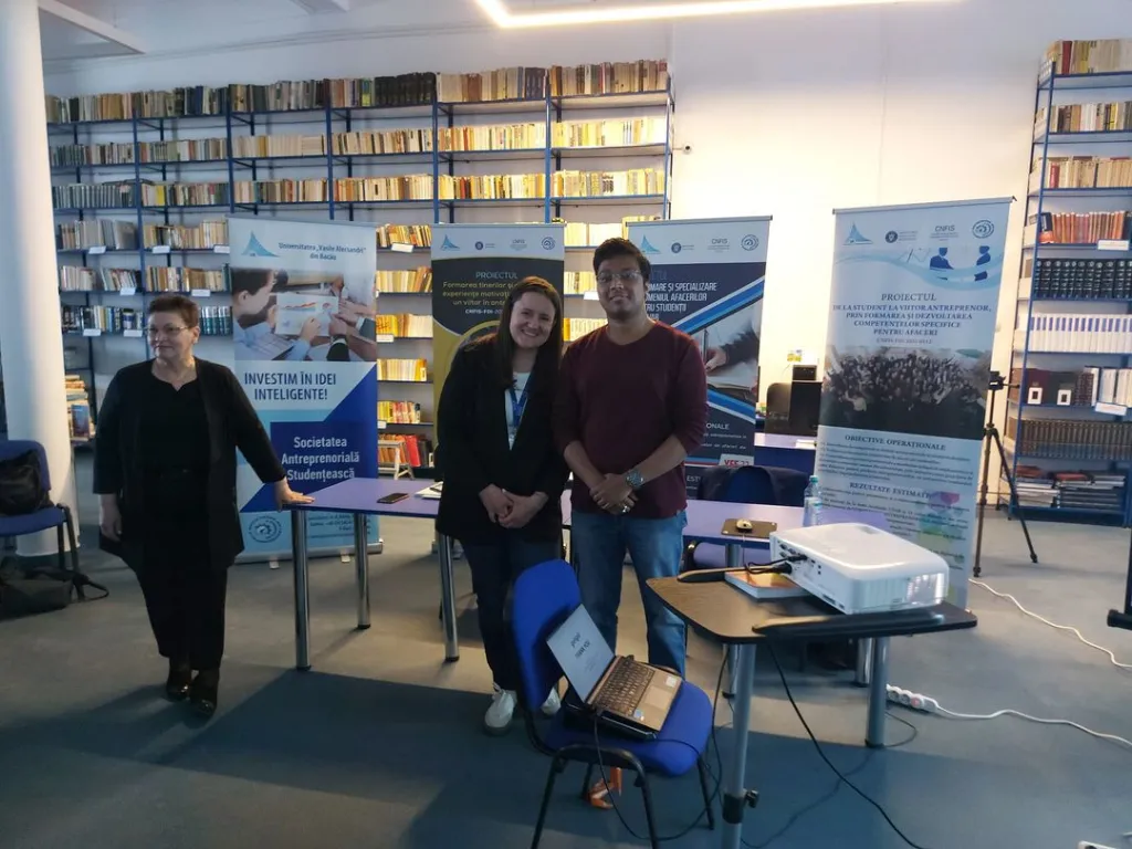 Luni, 22 mai 2023, ora 13, Biblioteca UVAB, Sala mare, a avut loc workshop-ul AFACERI INTERNAȚIONALE care i-a avut ca invitați pe GAUTAM KUMAR din India, cercetător și mentor pentru crearea de startupuri și RALUCA ALEXANDRESCU, expert RubikHub Piatra Neamț.