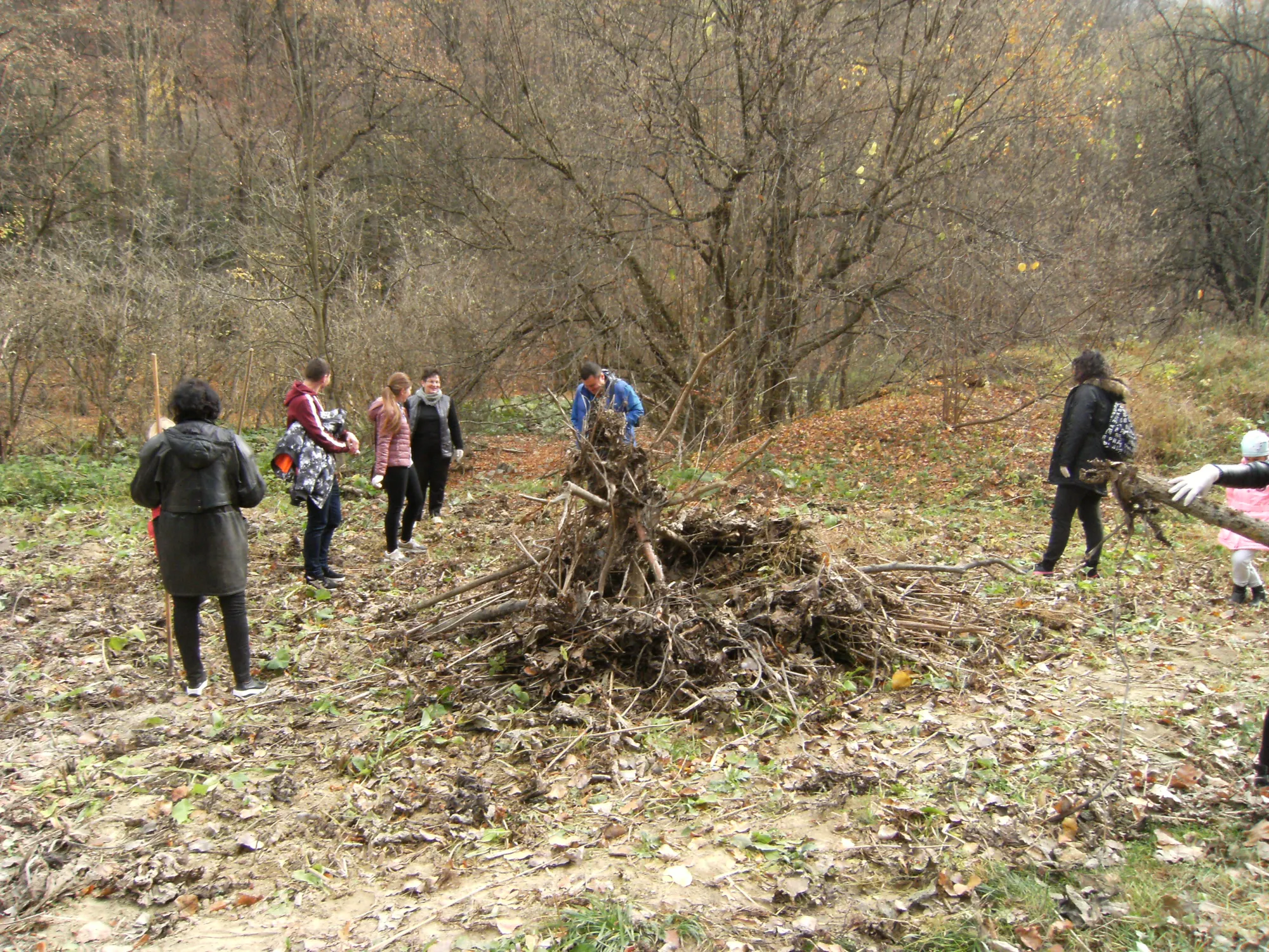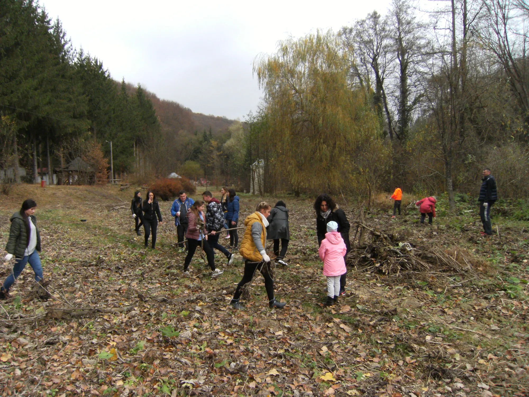 Fiecare participant, mic sau mare, după ce și-a pus mănușile de protecție a adunat „după puteri, coane Fănică!!” resturi vegetale, pet-uri, hârtie etc. într-o căpiță căreia îi vor da foc cei autorizați să facă asta în pădure. Mai mulți saci de gunoi și navete de plastic cu pet-uri au fost duse la pubela special amenajată (dar necurățată) a centrului. Conform zicalei „unde-s mulți puterea crește!!!”, zona a fost curățată corespunzător, iar pentru efortul depus tinerii studenți participanți au primit din partea Direcției Județene pentru Sport și Tineret Bacău, prin bunăvoința dl. director executiv Georgel Cojocaru, adeverințe de voluntariat.