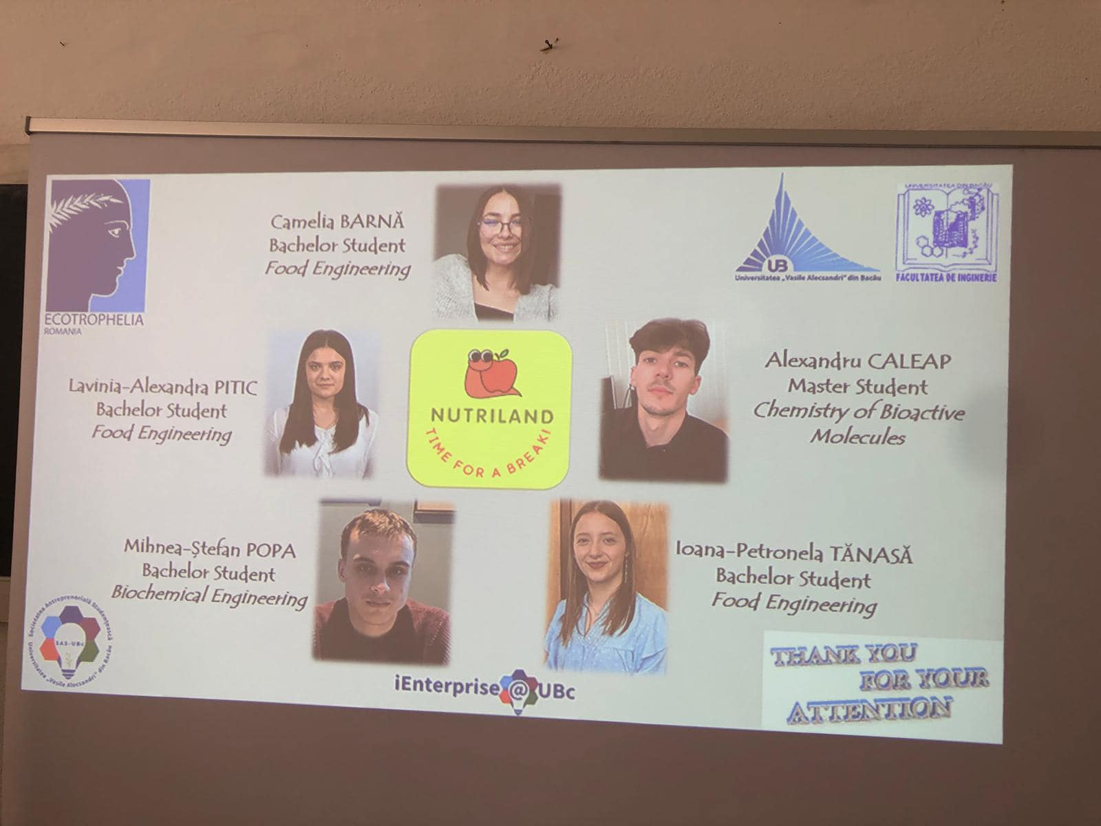 Echipa NutriLand va prezenta produsul alimentar inovativ la care au lucrat anul acesta, fiind prima participare a Facultății de Inginerie din cadrul Universității „Vasile Alecsandri” la această competiție care încurajează creativitatea, inovația și spiritul antreprenorial al studenților din cadrul specializărilor cu profil de industrie alimentară.