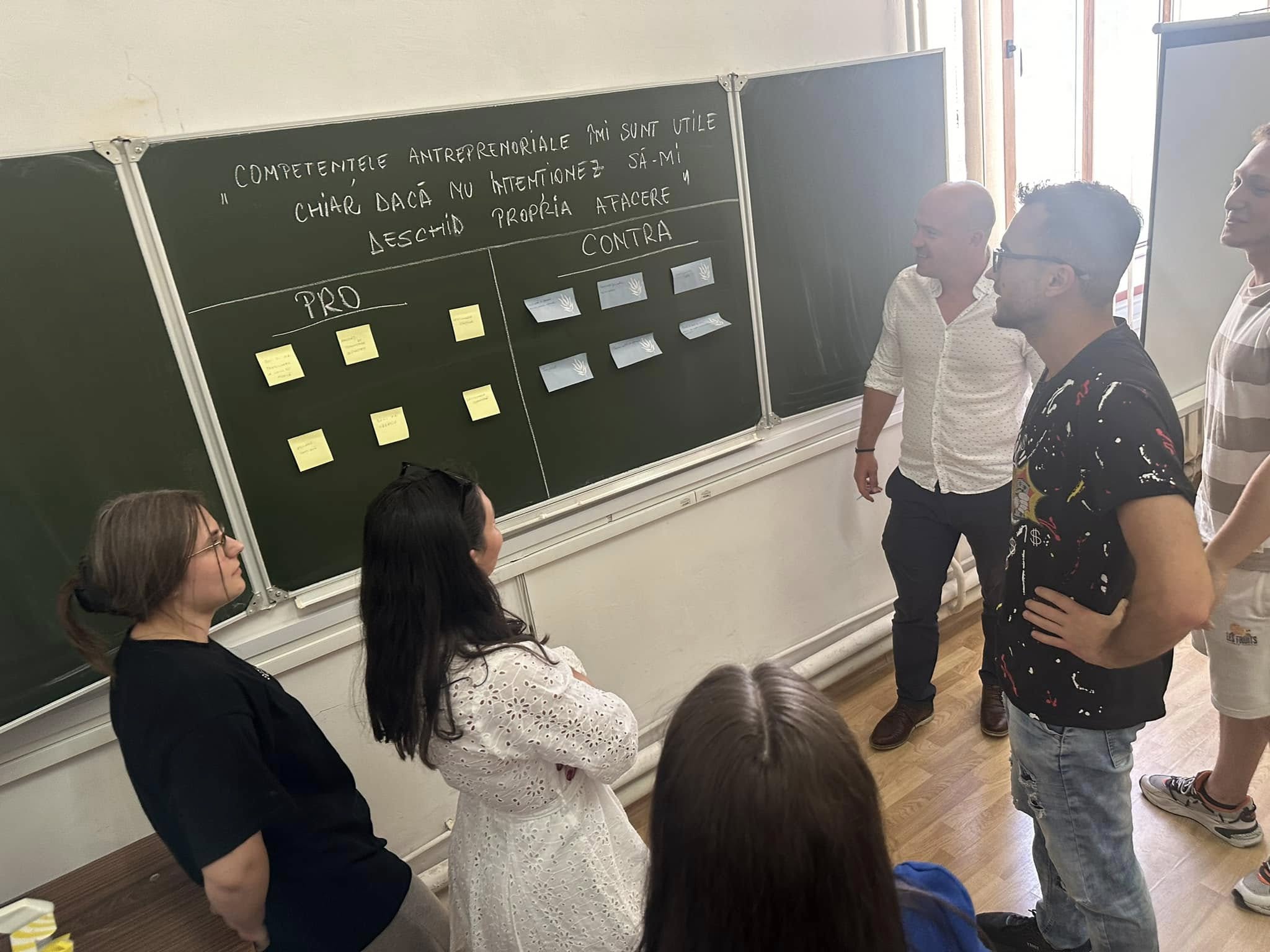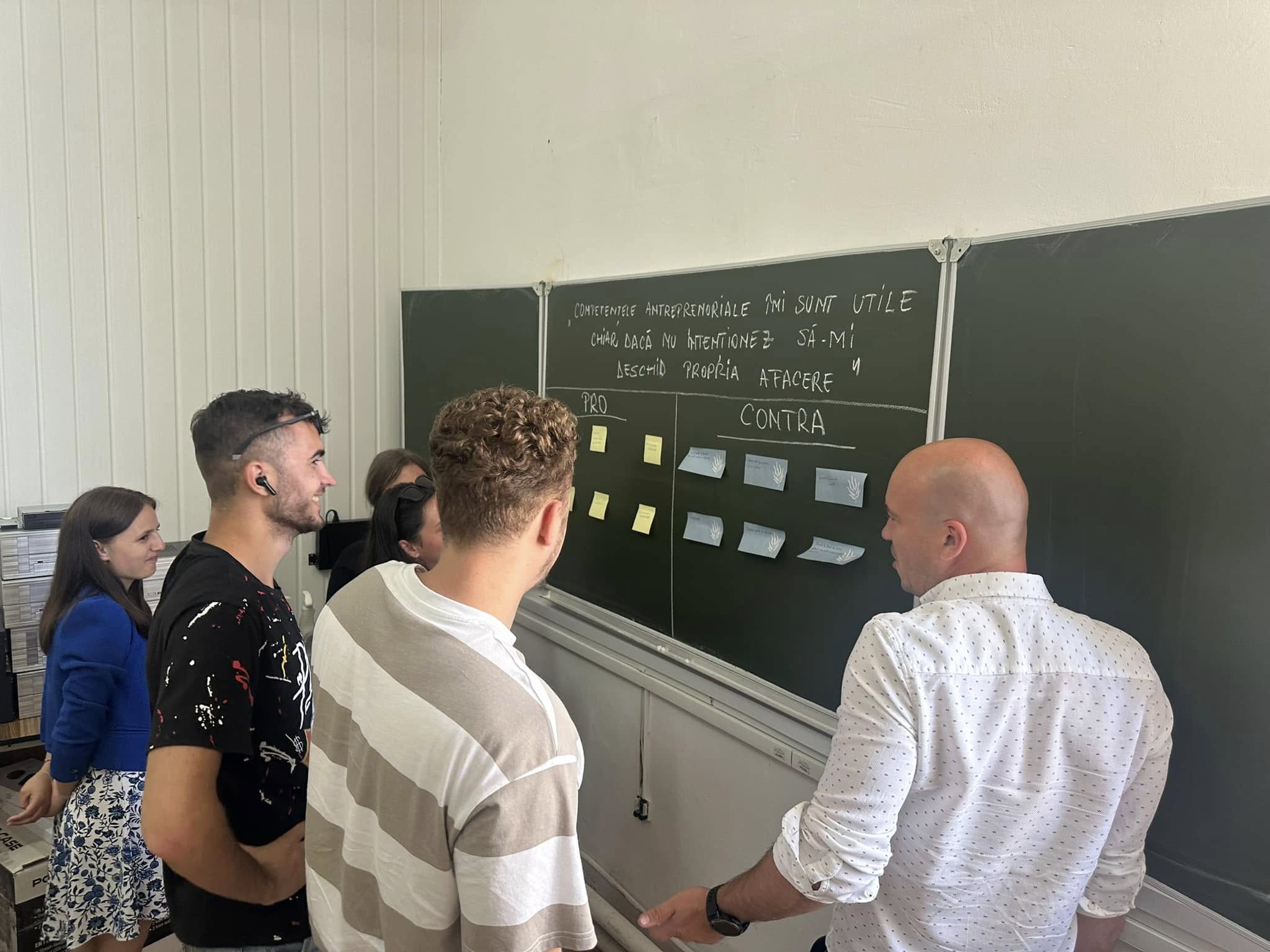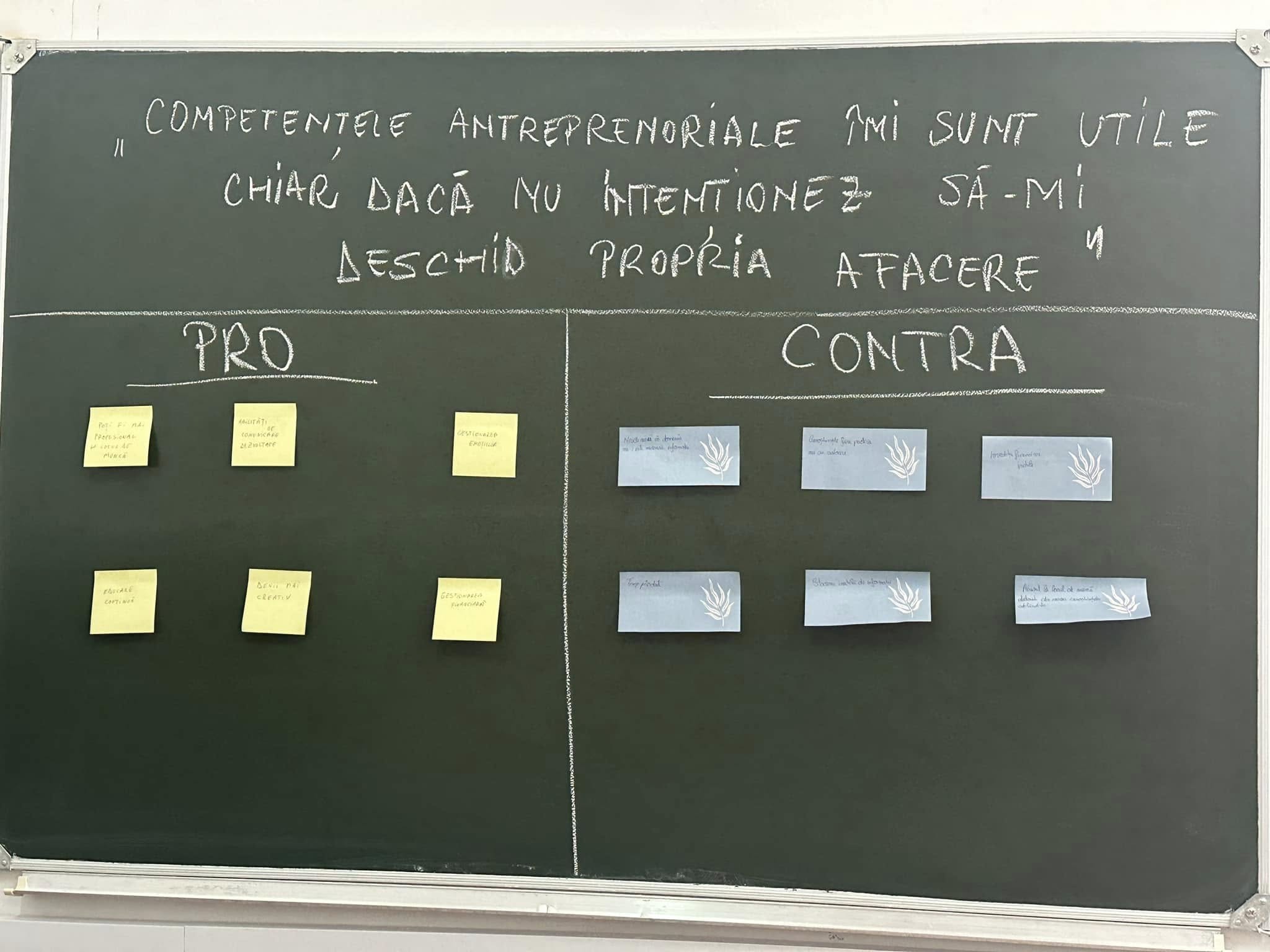 Studenții au identificat argumente pro și contra pentru următoarea afirmație: „Competențele antreprenoriale îmi sunt utile chiar dacă nu intenționez să îmi deschid propria firmă”, apoi au expus și dezbătut argumentele elaborate.