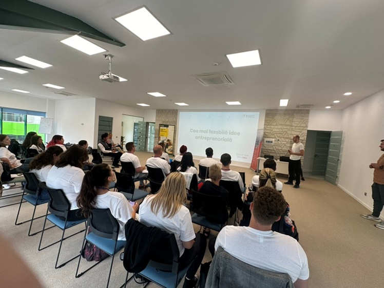 Studenții au lucrat în echipe la transformarea ideilor antreprenoriale în prezentări structurate, pe care le-au susținut în fața unui juriu format din antreprenori.