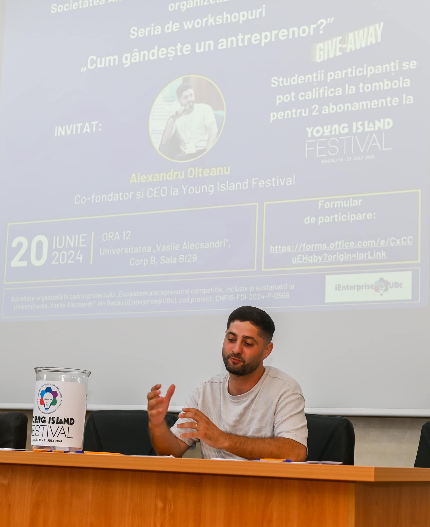 Cel de-al doilea workshop din cadrul seriei „Cum gândește un antreprenor?” l-a adus în fața studenților pe Alexandru Olteanu, co-fondator și CEO la Young Island Festival.