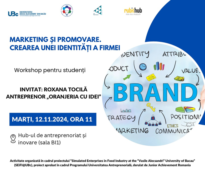 Invitata noastră, Roxana Smil, antreprenor “Oranjeria cu idei”, le-a oferit studenților un ghid practic referitor la crearea unei identități a firmei de exercițiu la care fiecare echipă lucrează în cadrul acestui proiect. Scopul workshopului a fost conturarea unei strategii de marketing și promovare pentru produsele fiecărei echipe.