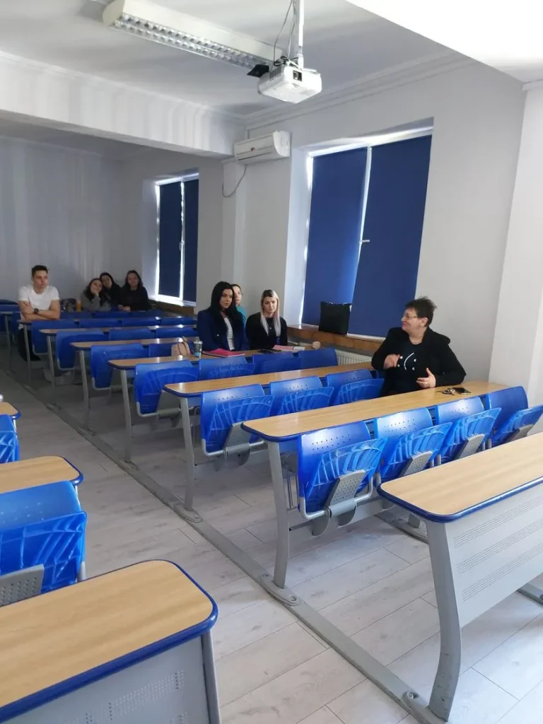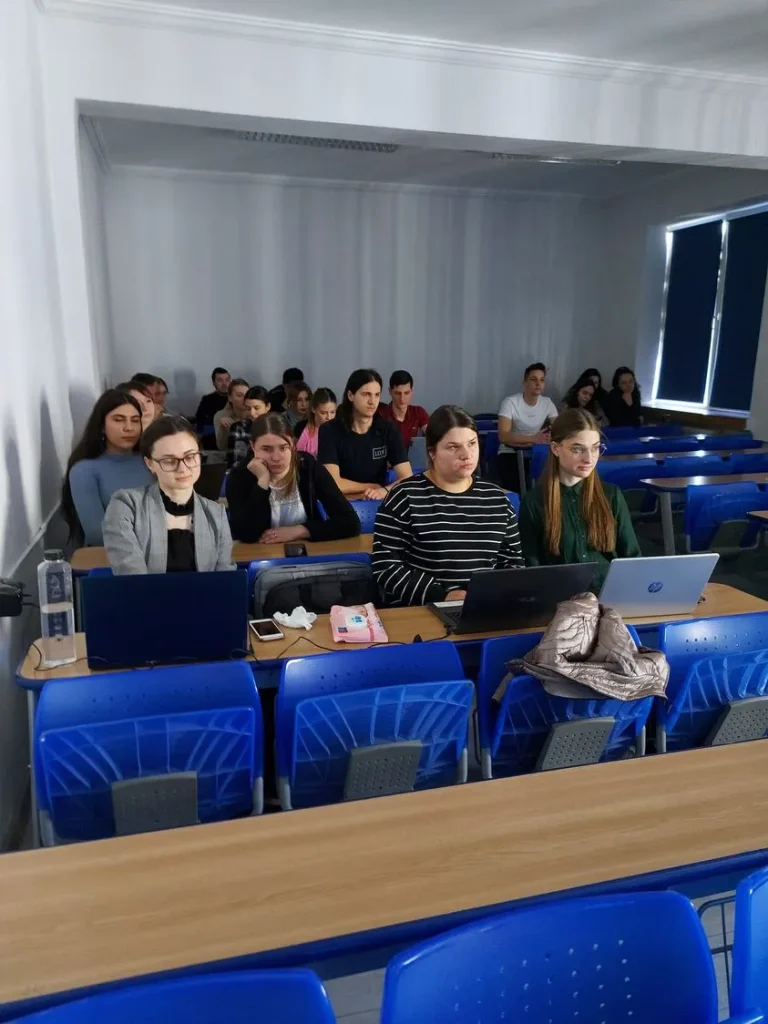 În sala C214, Corp C au fost prezenți studenți de la Facultatea de Științe economice, Administrarea afacerilor, cadre didactice, precum și membri CEx. SAS.